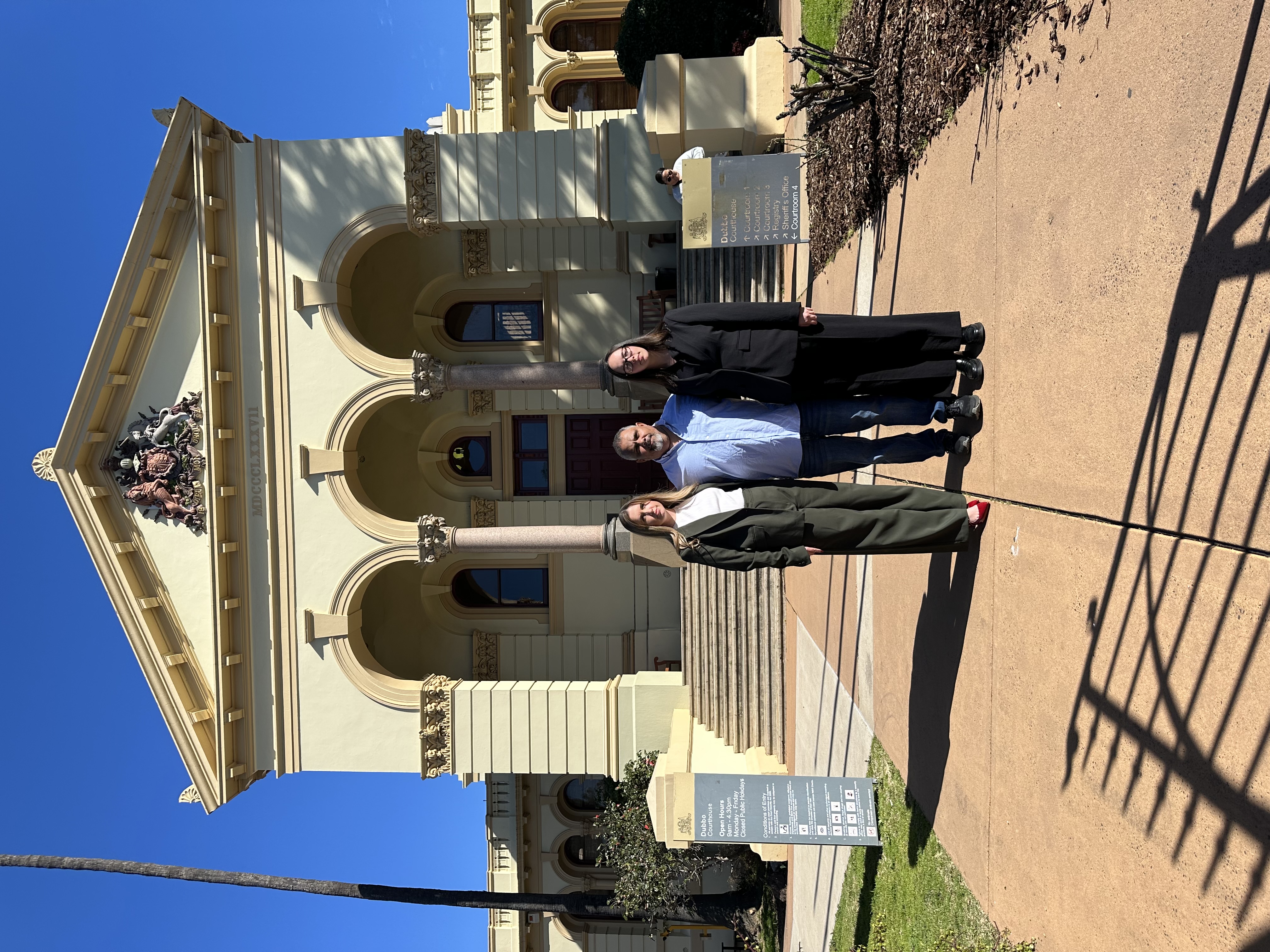 The following photo is of Emma Parker (ALS Coronial and Trial Advocate), Michael Brown, and Tia Caldwell (ALS Solicitor) outside Dubbo Courthouse: